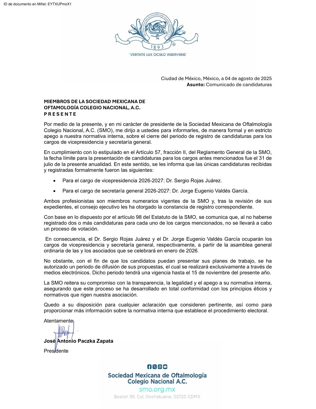 Lineamientos internos para la designación de las y los Peritos Profesionales en Oftalmología de la Sociedad Mexicana de Oftalmología Colegio Nacional, A. C.