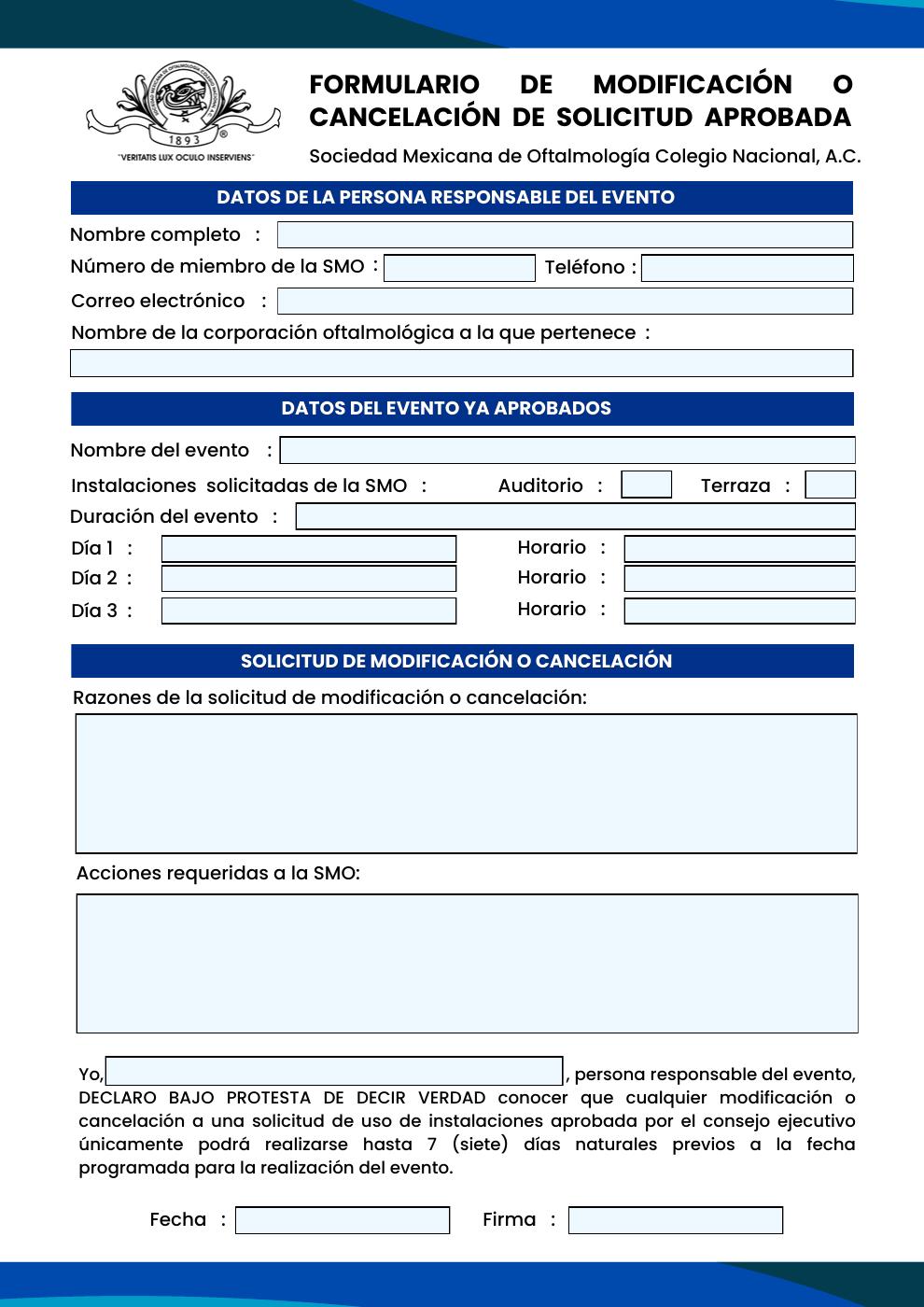 Formulario de Modificación o Cancelación de Solicitud Aprobada